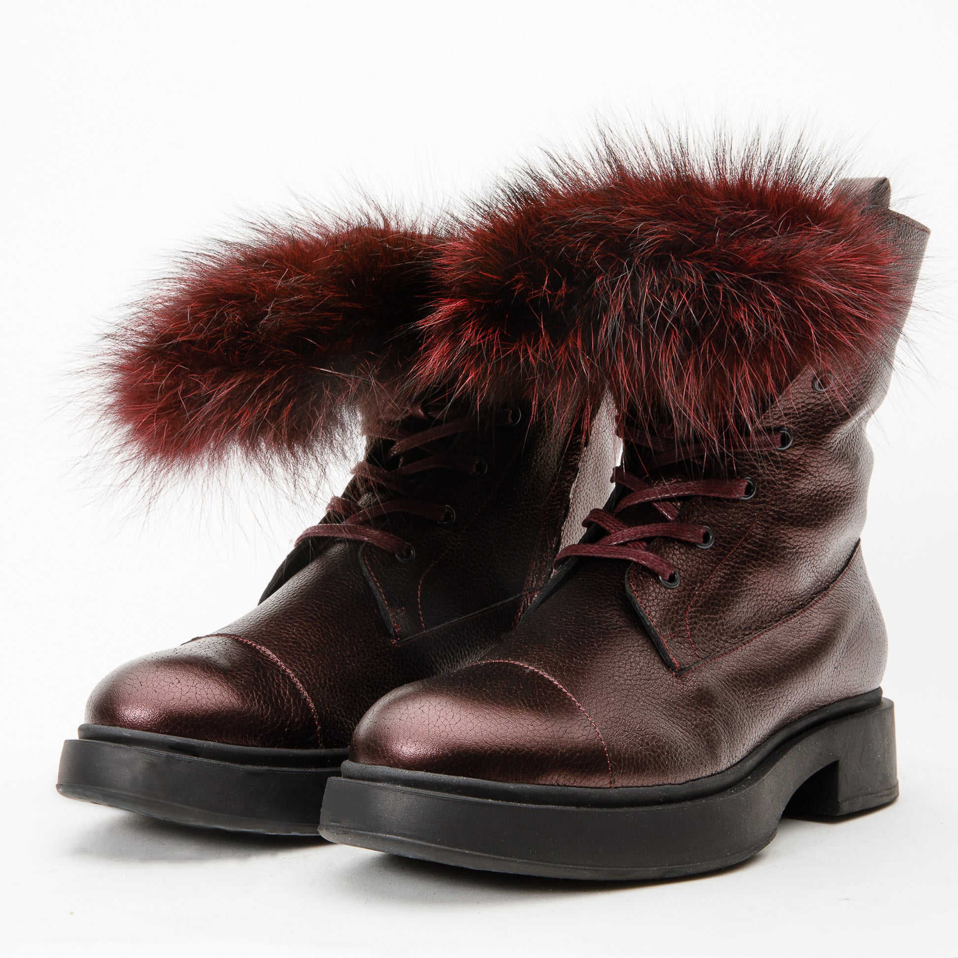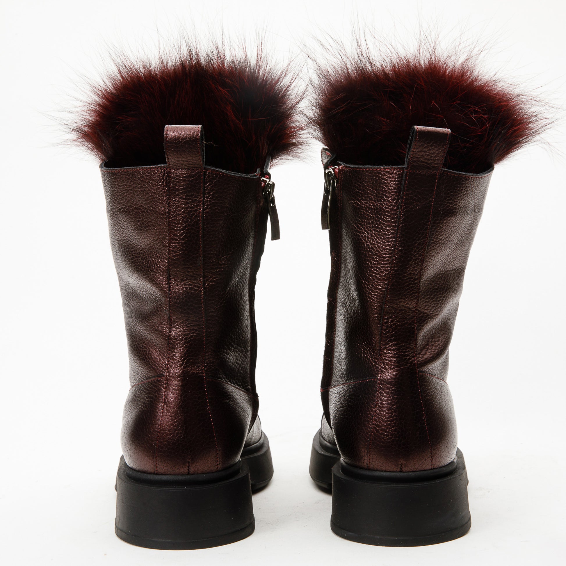 Kajapati Burgundy Leather Natural Fur Mid Calf Women Boot