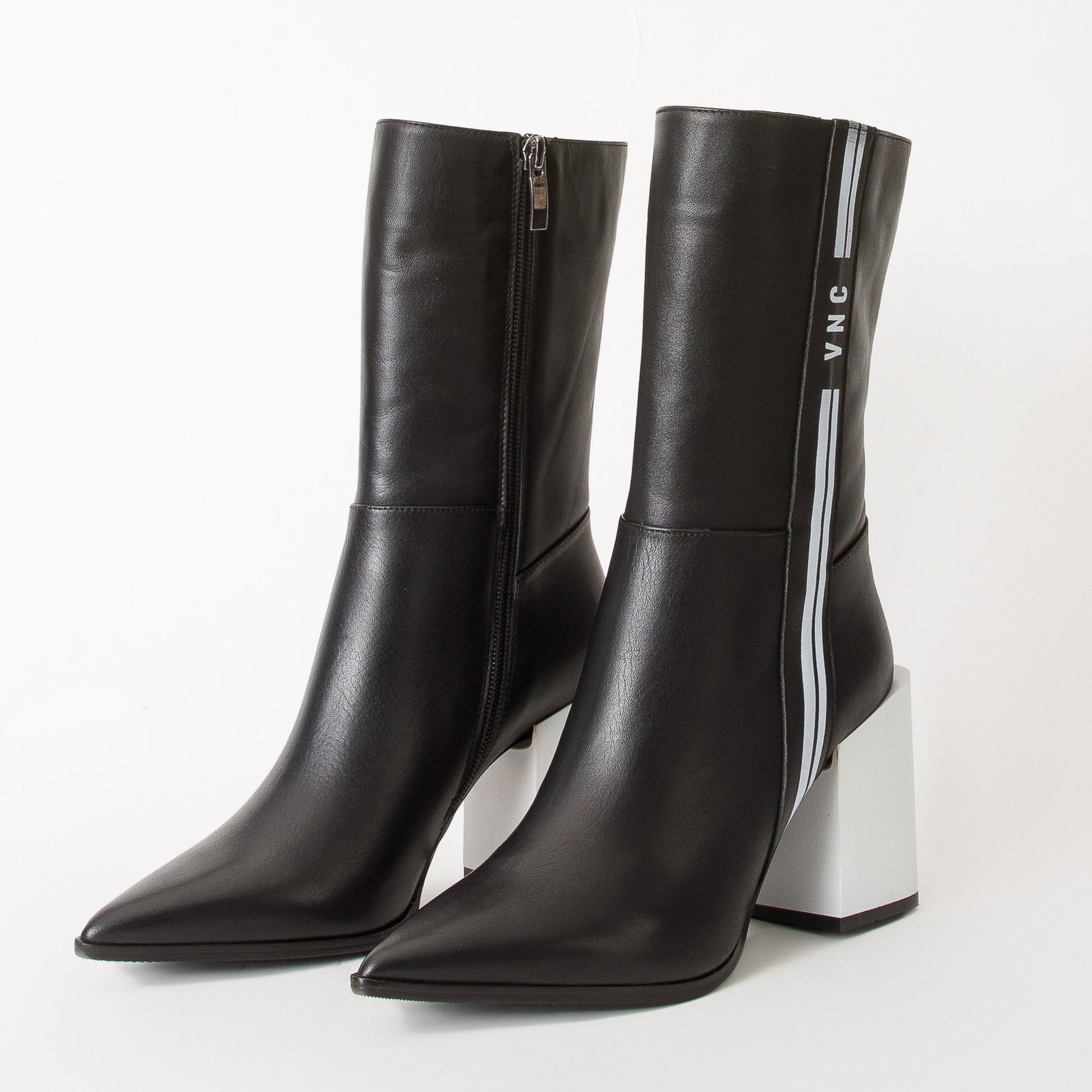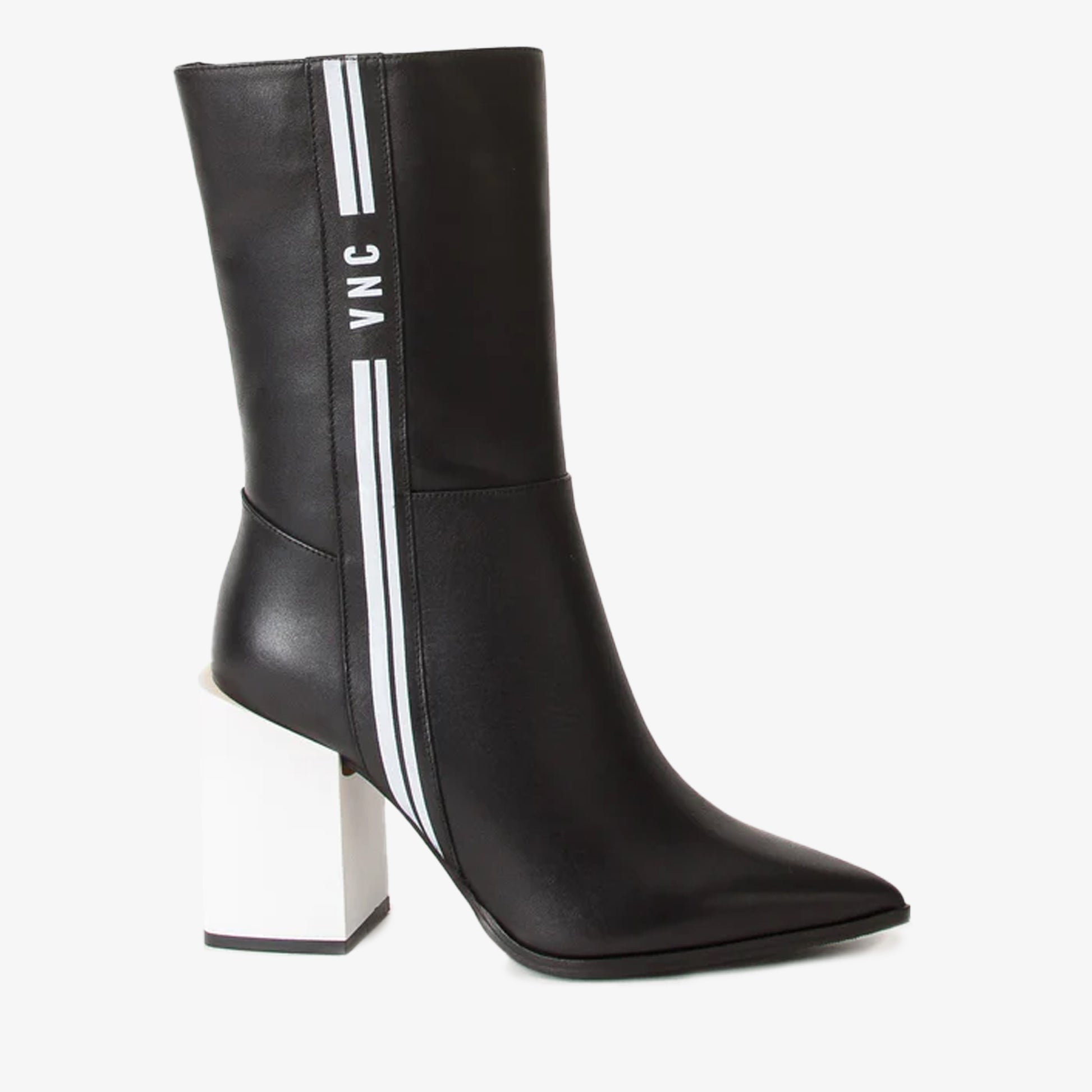 Loretto Black Leather Block Heel Mid Calf Women Boot