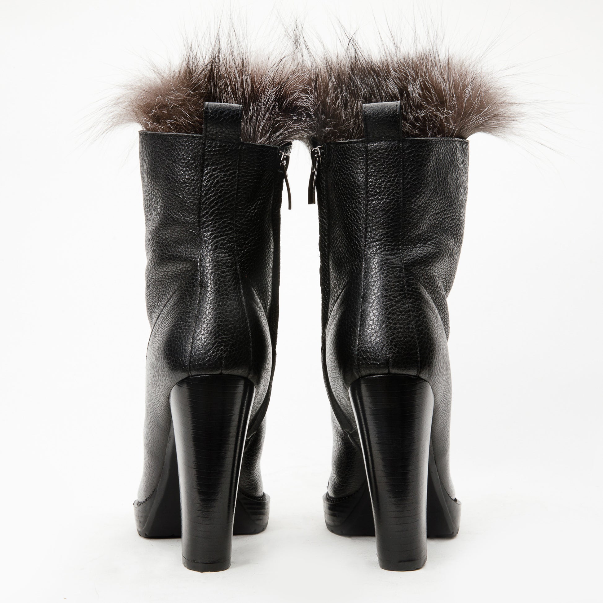 The Melo Black Leather Natural Fur Mid Calf Platform Heel Women Boot