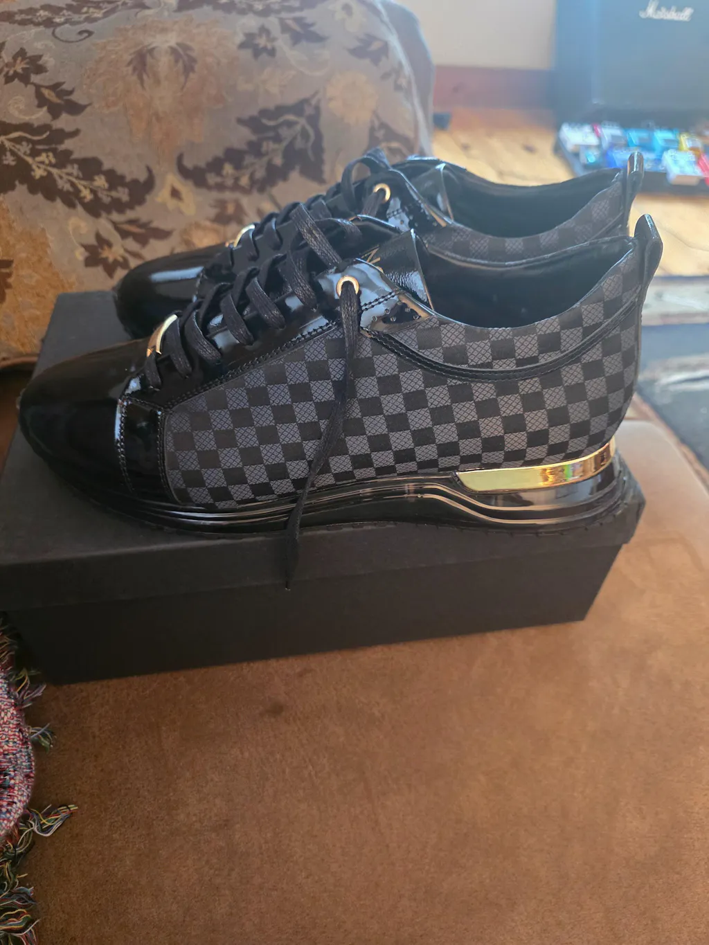 - Features a unique checkerboard pattern on the upper, creating a bold and modern statement