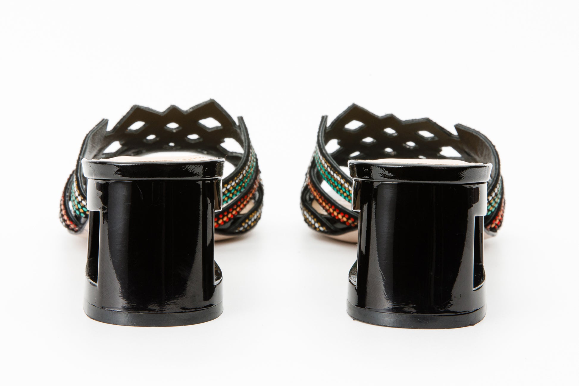 Artisanal Glitter Embellishments on Mesh Design: The leather upper is adorned with a mesh design, and on this canvas, colorful glitters are meticulously hand-applied, adding a touch of uniqueness and vibrancy to the sandal.