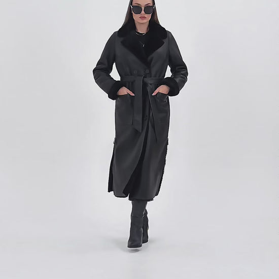 The Raven Long Shearling Black Leather Women Leather Jacket