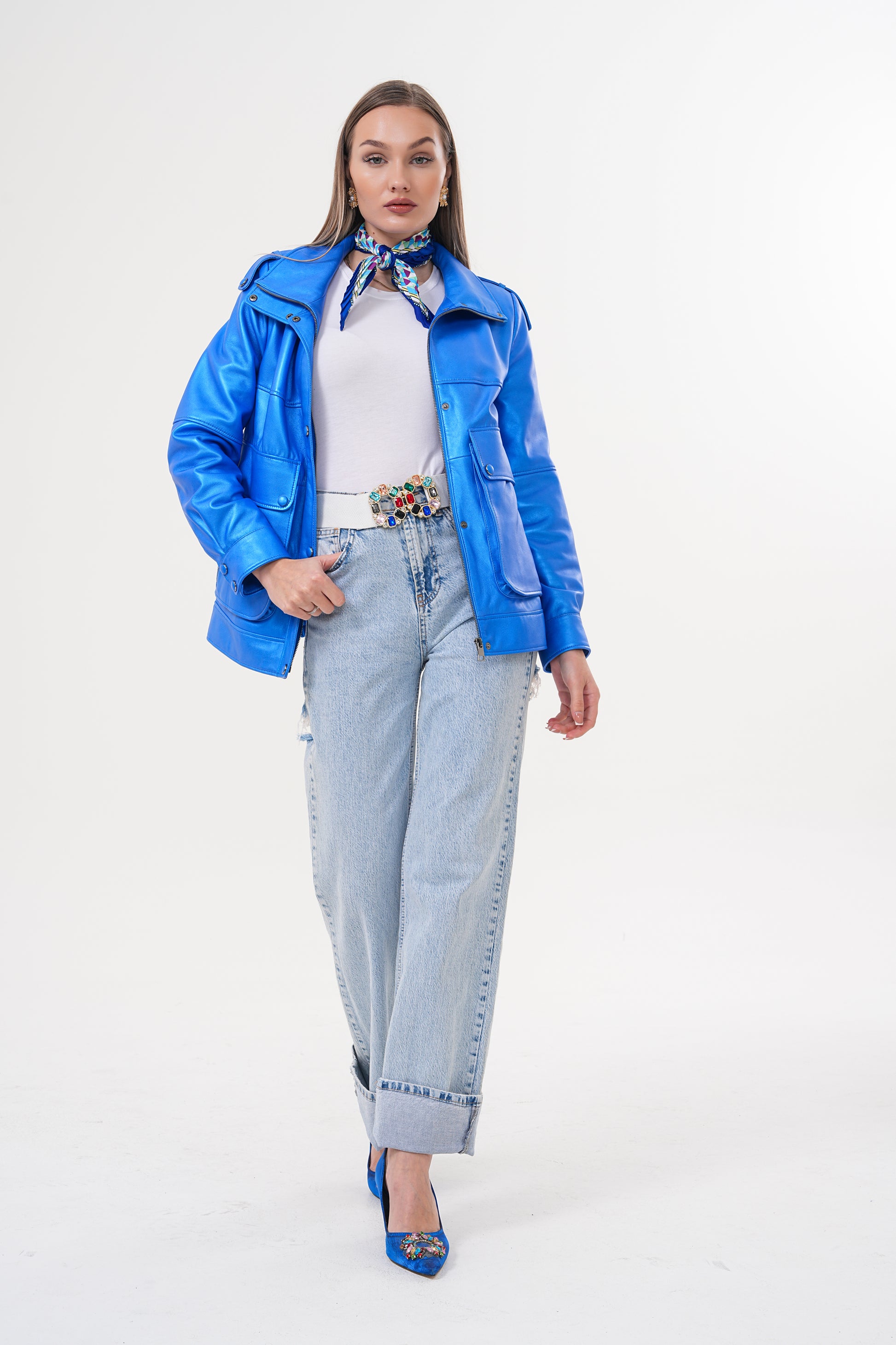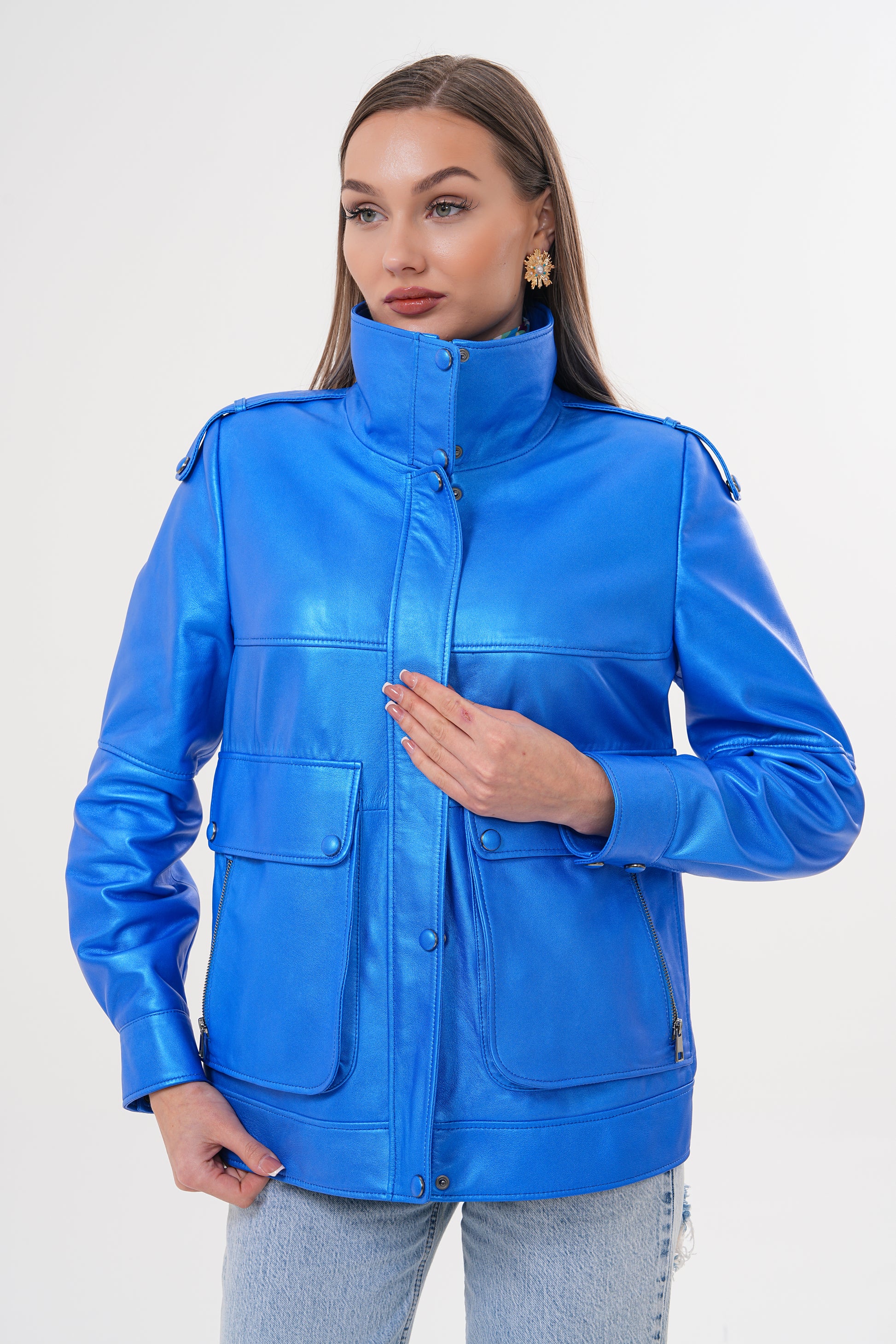 The Rivera Blue Leather Women Jacket