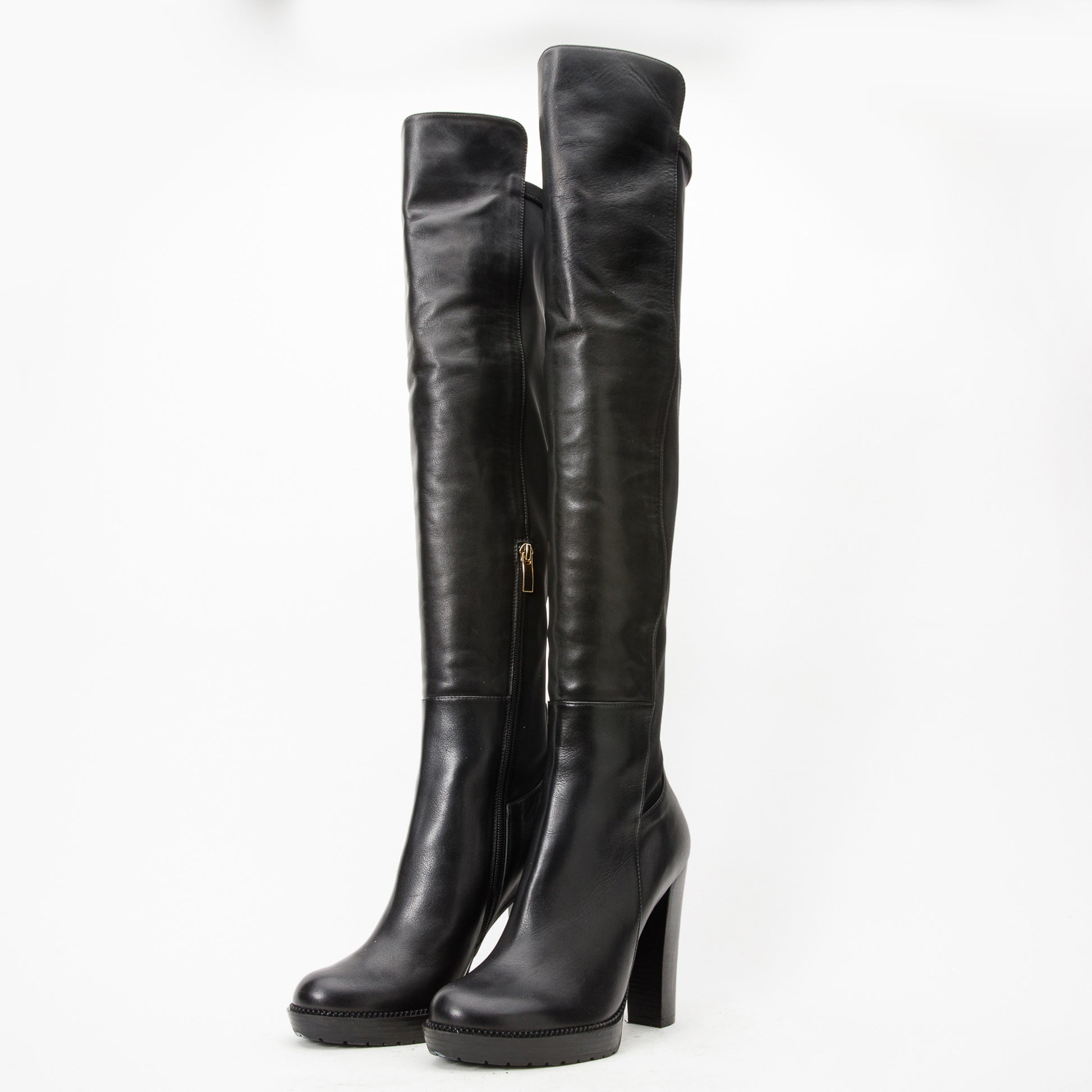 The Sao Paulo Black Leather Knee High Platform Heel Women Boot