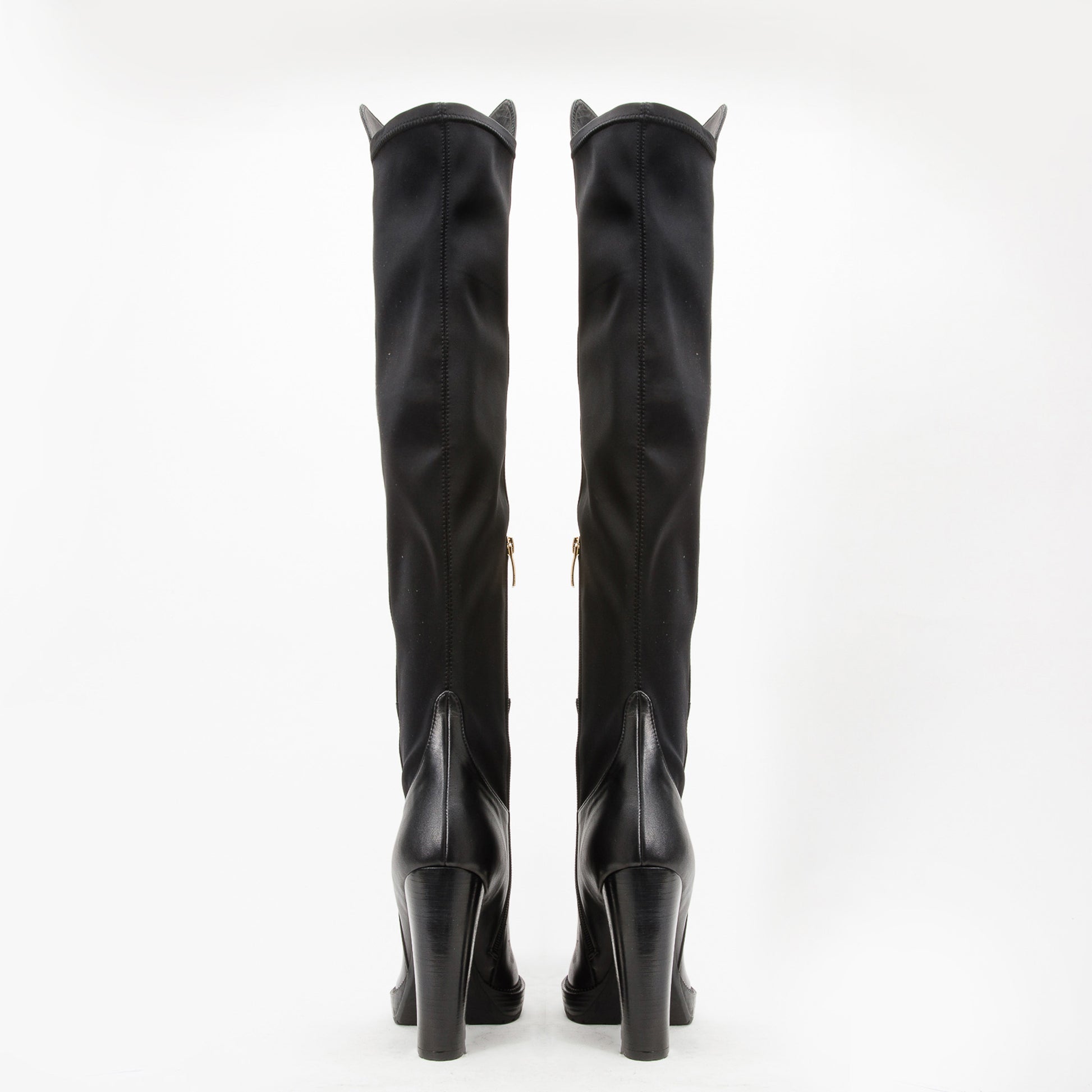 Sao Paulo Black Leather Knee High Platform Heel Women Boot