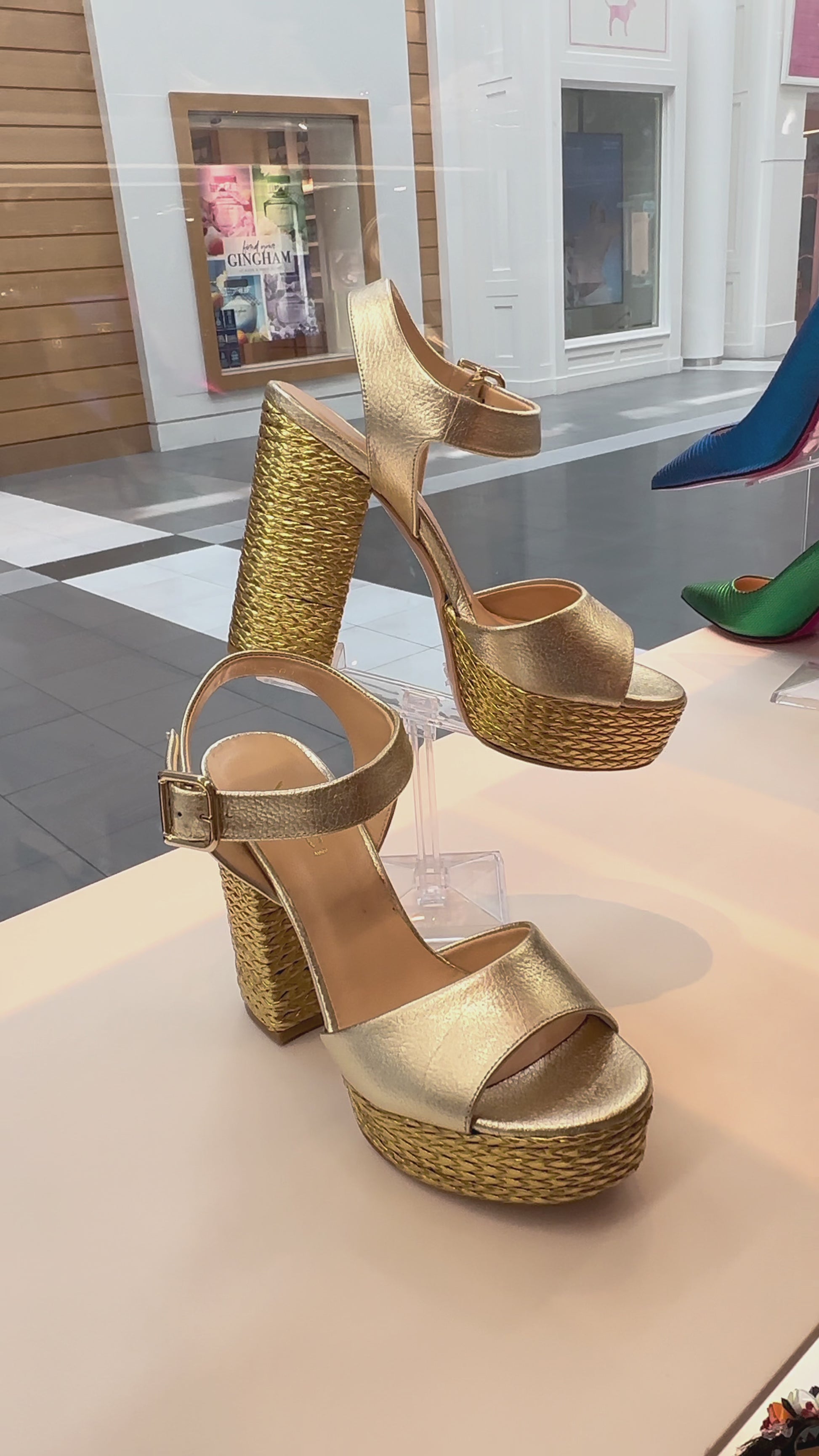 Elegance Illuminated: Tampico Platform Heel Gold Leather Sandals