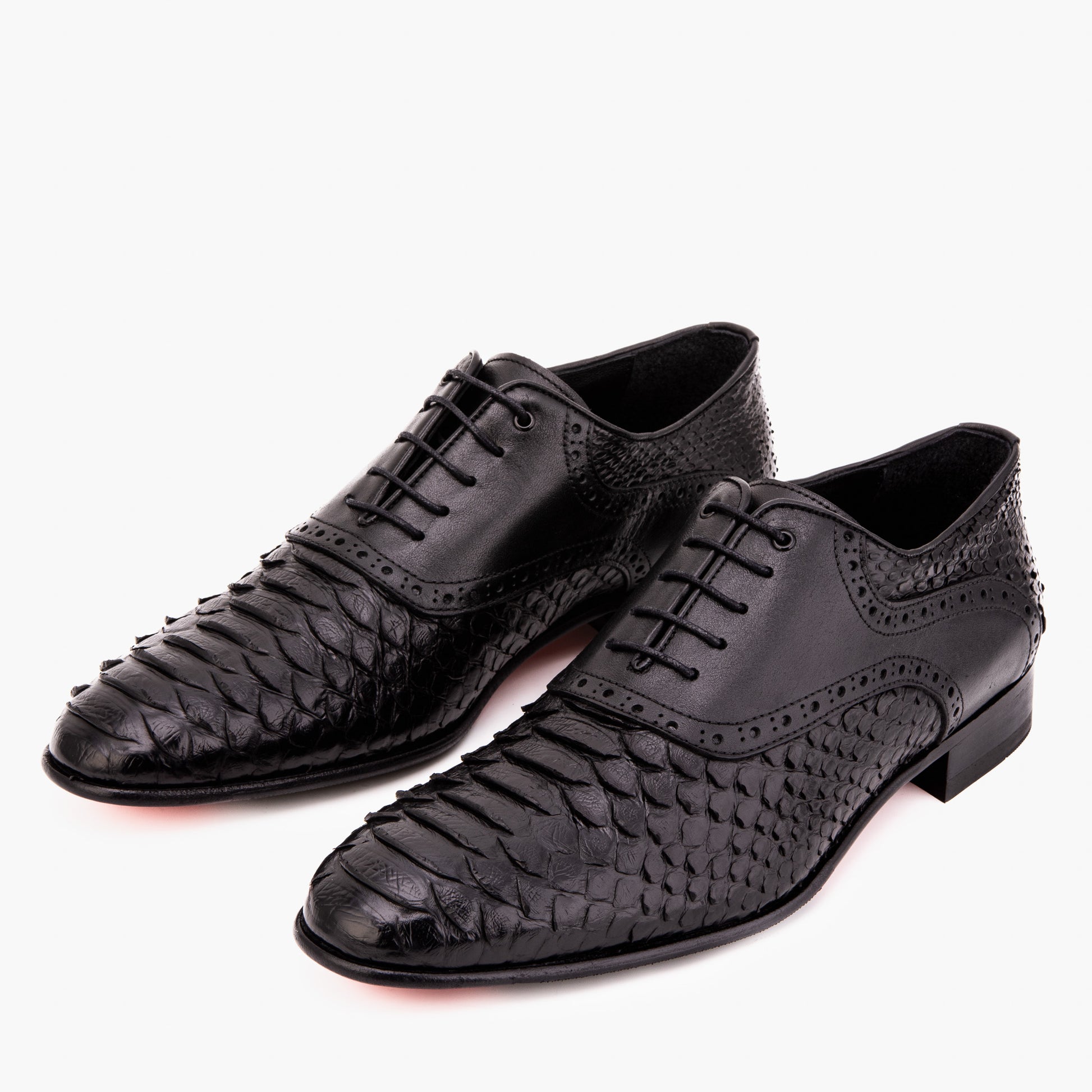 Elegant all-black design blending exotic texture with timeless Oxford refinement