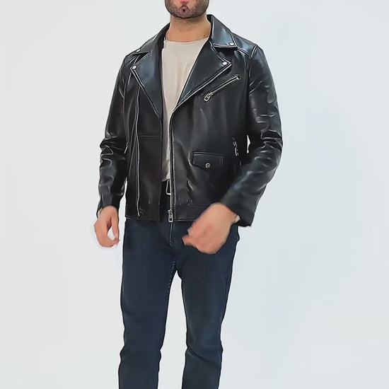 The Volt Black Leather Biker Men Jacket