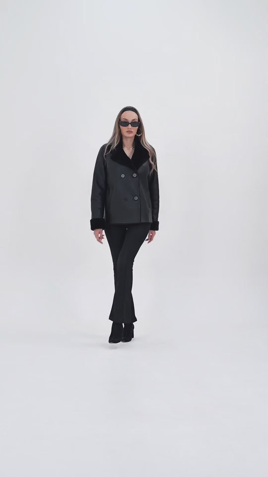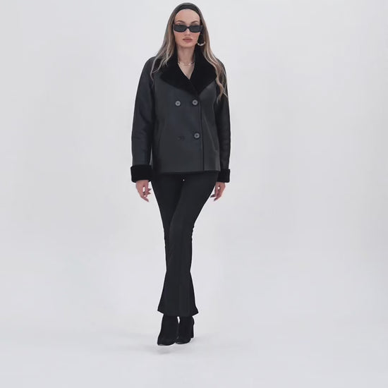 The Zurich Double-Breasted Black Shearling Leather Women Jacket