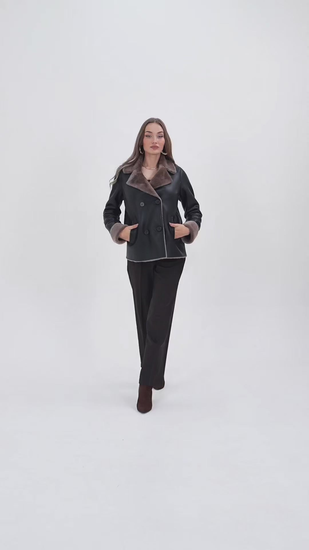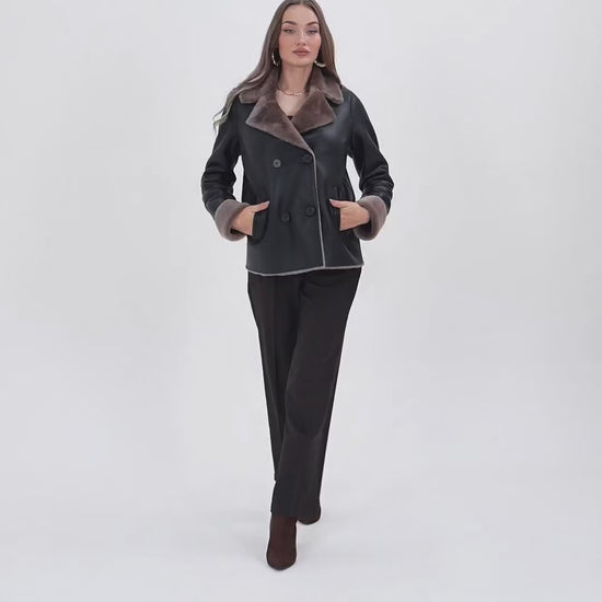 The Zurich Double-Breasted Brown Shearling Collar Leather Women Jacket