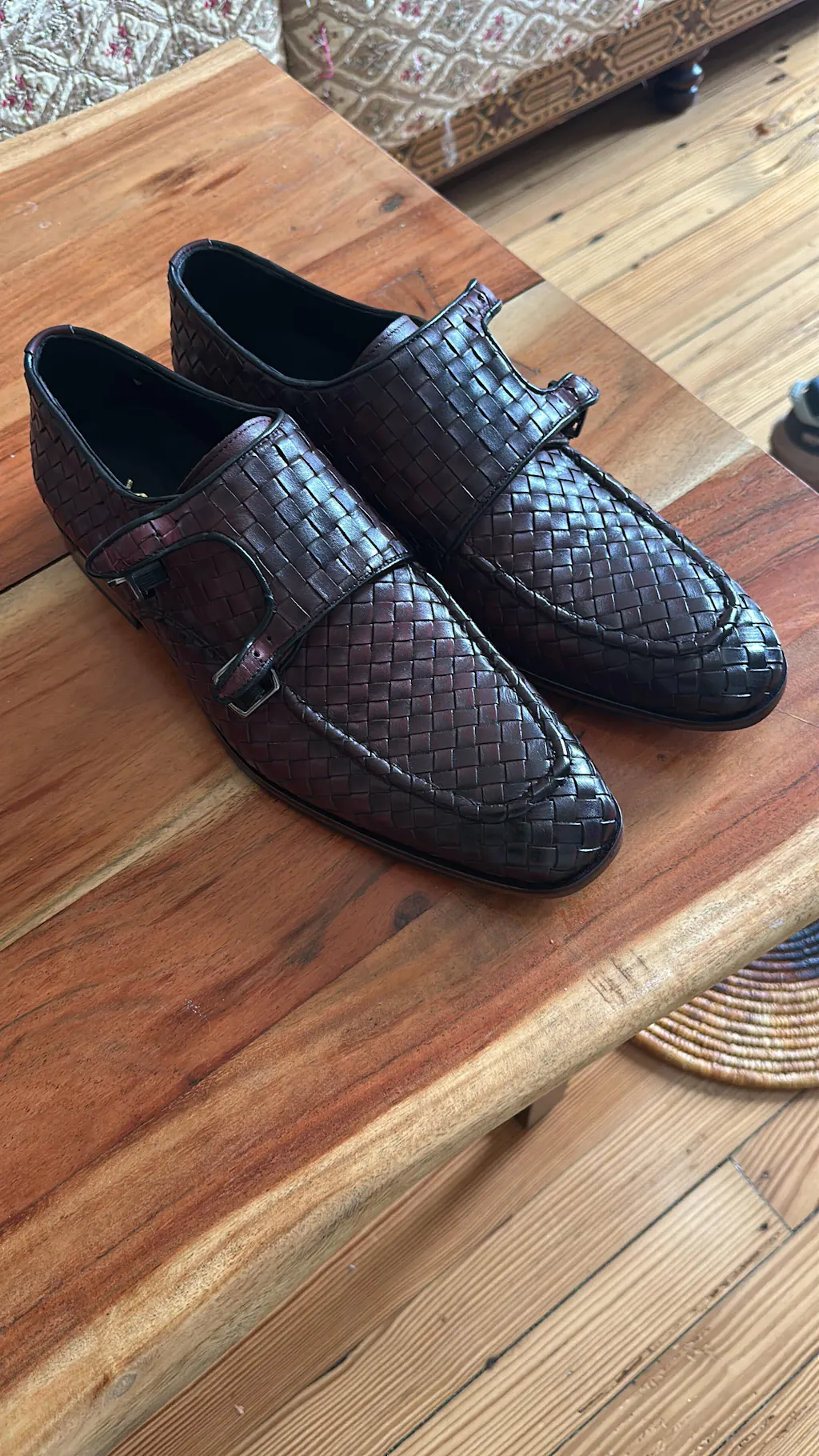 Step into refined elegance with the Turan burgundy handwoven dress shoes, a masterpiece of meticulous craftsmanship. These shoes are 100% handcrafted, featuring a handwoven burgundy upper that exudes unique sophistication. The double monk style adds a modern twist to classic elegance.
