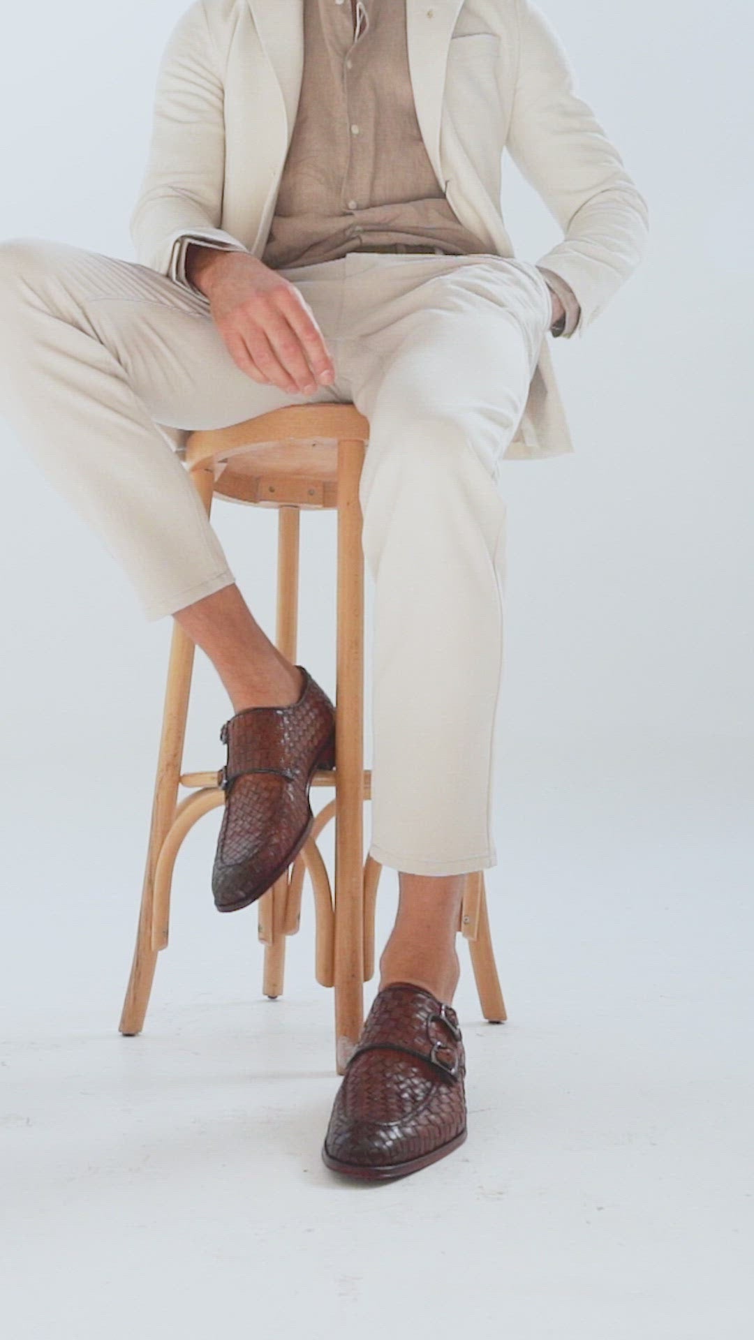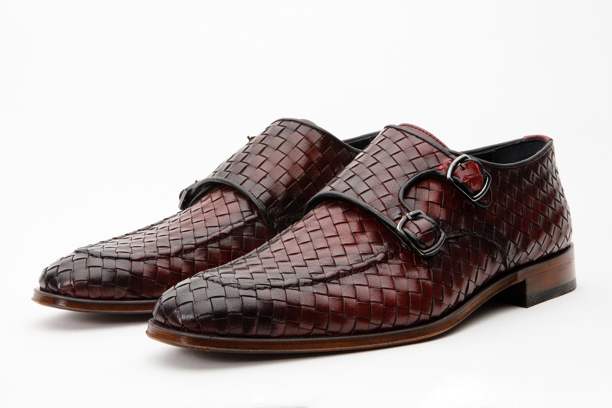 Step into refined elegance with the Turan burgundy handwoven dress shoes, a masterpiece of meticulous craftsmanship. These shoes are 100% handcrafted, featuring a handwoven burgundy upper that exudes unique sophistication. The double monk style adds a modern twist to classic elegance.